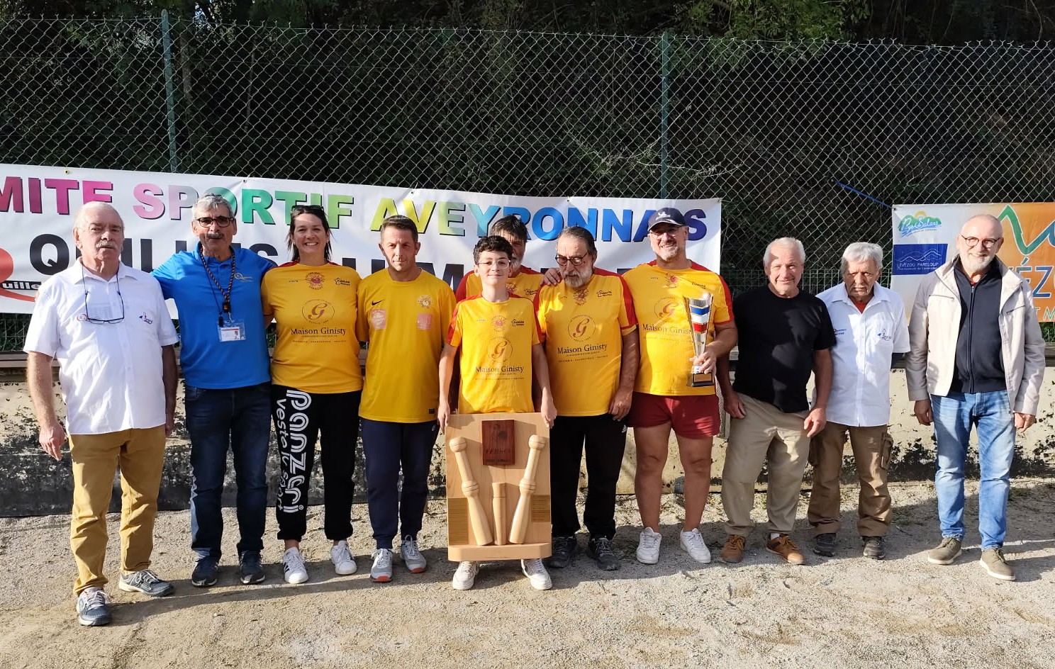 Ce Samedi 27 Septembre en début d’après midi, sur le terrain de Pont de Salars (12), se sont déroulées les finales de la coupe de France des clubs des Quilles au Maillet. La Coupe du président, opposant ELPB (32) au club de La Baraque (12), a été remportée par le club d’ELPB (32) 8 à 1. En finale de la Coupe de l’amitié, Viella (32) rencontrait Prades de Salars (12), le club de Viella (32) a remporté la victoire 8 à 1. Dès 16 h 30, devant une bonne centaine de spectateurs, a débuté la finale de la Coupe de France des clubs. Pour le club d’Auch (32) et de Sebazac (12), la partie jusqu’à la fin de la rencontre fut très serrée. Au final, SEBAZAC a réussi enfin, à prendre le titre de Champion de France des clubs 2025 par 5 à 4. Après la rencontre sportive, la remise des coupes a eu lieu avec la présence de Daniel Julien, Maire de Pont de Salars, de Gibert Loriot, président de Prades de Salars, Jean-Pierre Auguy Responsable Aveyronnais.